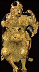 本展では上記鞍馬寺の経塚から出土した金銅押出毘沙門天像(上図)のほか、足柄峠を越えた東国への堺に位置する朝日観音堂(南足柄市)の兜跋毘沙門天立像(平安時代)が出陳されます。