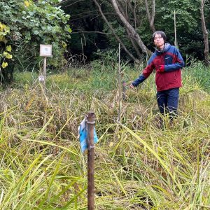 後半は、舞岡公園内に復元された弥生時代の水田に移動し、田んぼや古代米の生育の様子を観察しました。