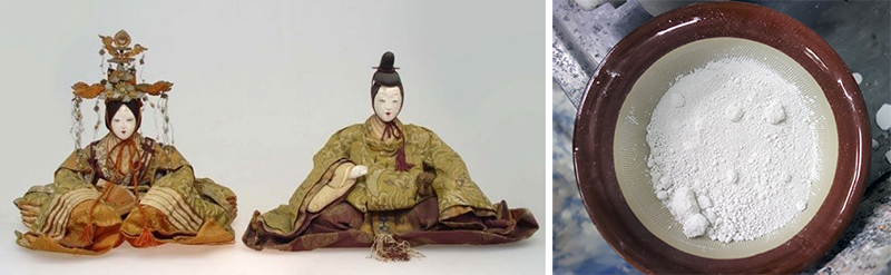 砕いて、きめ細かい粉にしてできあがります。人形の顔は、この胡粉を