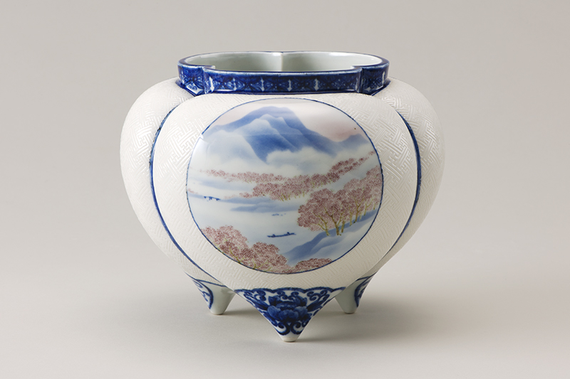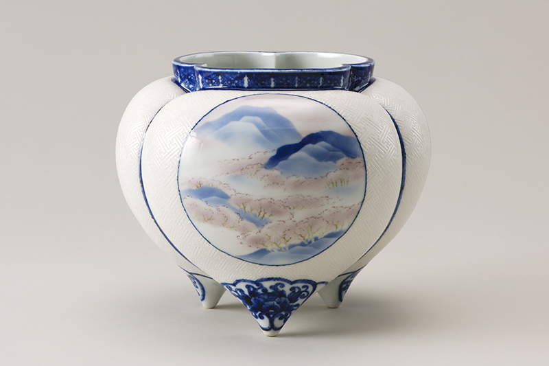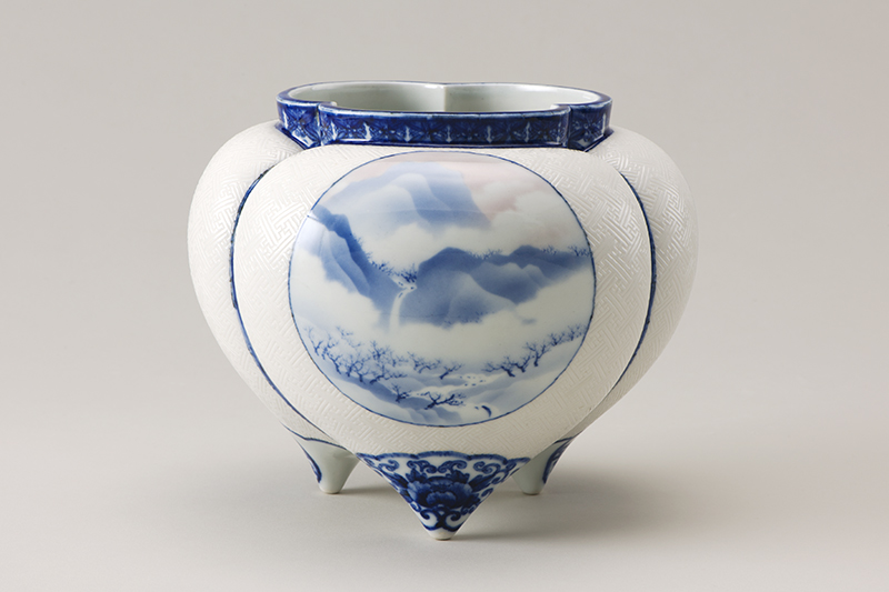 眞葛󠄀焼 釉下彩山水図香炉(まくずやき ゆうかさいさんすいずこうろ)