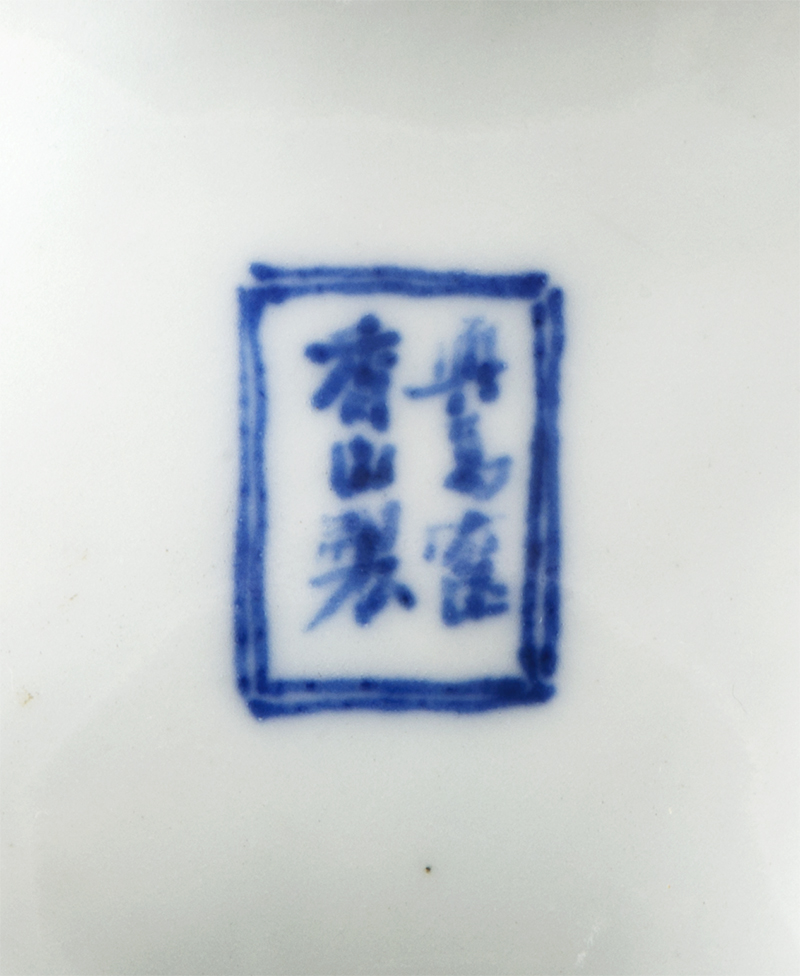 さて、この作品の底には「眞葛󠄀窰香山製」という銘があり(図14)、横浜で陶磁器制作を行い活躍した宮川香山の作であることがわかります。