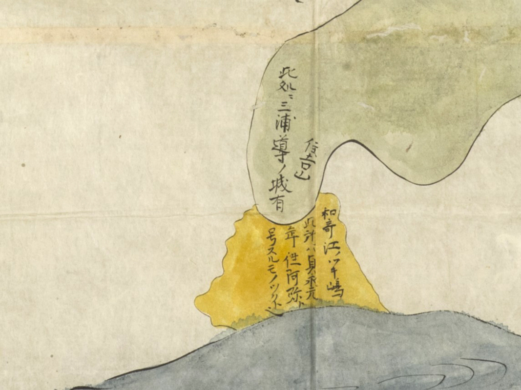 鎌倉の地誌は、延宝2(1674)年に徳川光圀が金沢八景、鎌倉、水戸家関係各所を巡覧して調査し、光圀の命を受けた河井恒久らが文献考証・実地調査を経て、貞享2(1685)年に編纂した『新編鎌倉志』を契機として情報が整理されますが、ふたつの図はいずれも『新編鎌倉志』以前、もしくは同時期に作成されたと考えられます。ふたつの図に地名の誤記が多いのは、鎌倉の名所旧跡が整理されて固定化する以前のものであること、鎌倉に土地勘のない者によって作成されたことが一因にあるといえるでしょう。