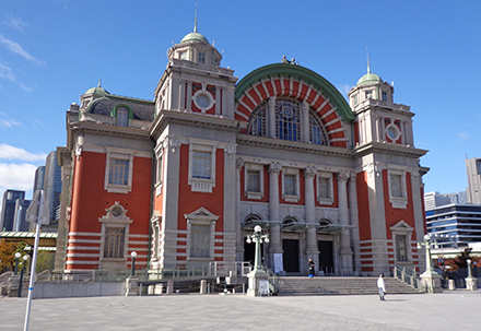 会場となった中央公会堂は、大阪市北区中之島に所在し、すぐ隣には大阪市東洋陶磁美術館があるなど大阪の文化施設の拠点の一画に位置しています。中央公会堂は「北浜の風雲児」と称された相場師・岩本栄之助の出資のもと、大正2年(1913)に着工、同7年に竣工したネオ・ルネッサンス様式を基調とした鉄骨煉瓦造の建物です。そして現在、国の重要文化財に指定されています。